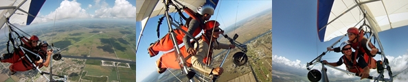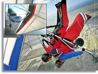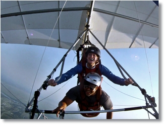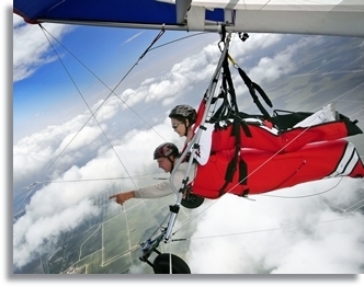 Click on Picture for a Short Video The PilotControl and Fly the Hang Glider Yourself! After 30 minutes of video and ground school, you'll get a hands-on lesson in free flight. Under the guidance of the Instructor, pilot the glider trough the air just like a bird, performing the basic maneuvers and skills needed to become a modern hang glider pilot. This is the first step toward becoming a certified solo pilot - and one of the Sky Rides that can be credited toward the cost of our complete solo training package. 2,000 feet - $199 |