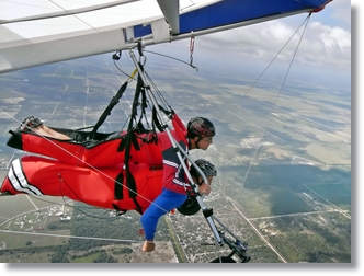 Tandem Discovery FlightEver Wondered What Hang Gliding Is All About? This is the perfect opportunity to take a training Discovery Flight with a certified instructor. This flight will quench your thirst for knowledge about this amazing sport. You are towed to 1,500 feet above the beautiful south Florida countryside and once disconnected from tow vehicle at altitude, you will control the glider with ease under the guidance of the instructor. You will experiencing just how easy it is to fly one of these modern Hang Gliders. This Sky Ride can be credited toward the cost of our complete solo training package. 1,500 feet — $179